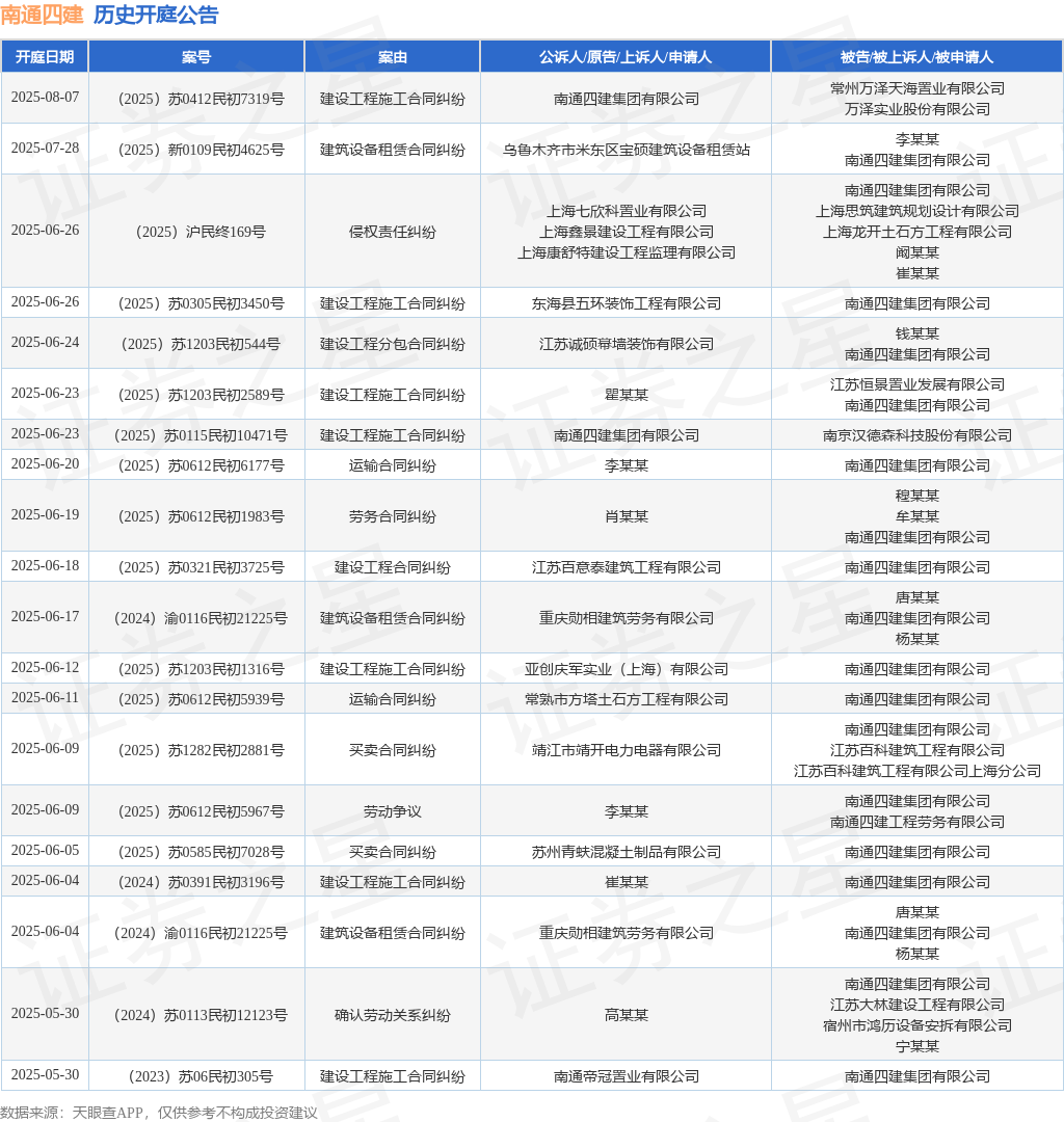 本站消息,根据天眼查APP显示,近日公布了一则南通四建集团有限公司作为被告/被上诉人的开庭公告,详细内容如下: