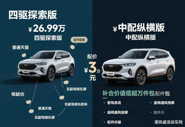 这话说得没错,26.99万的四驱探索版,配置确实有点说不过去。
