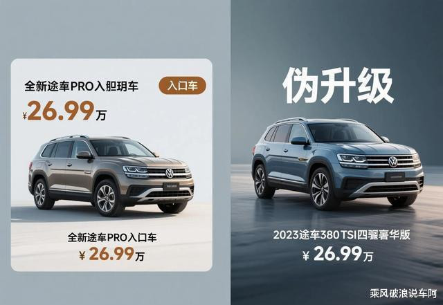 相比2023款途昂380TSI四驱豪华版,全新途昂Pro入门版通过减配实现“伪升级”,价格反而更高了。